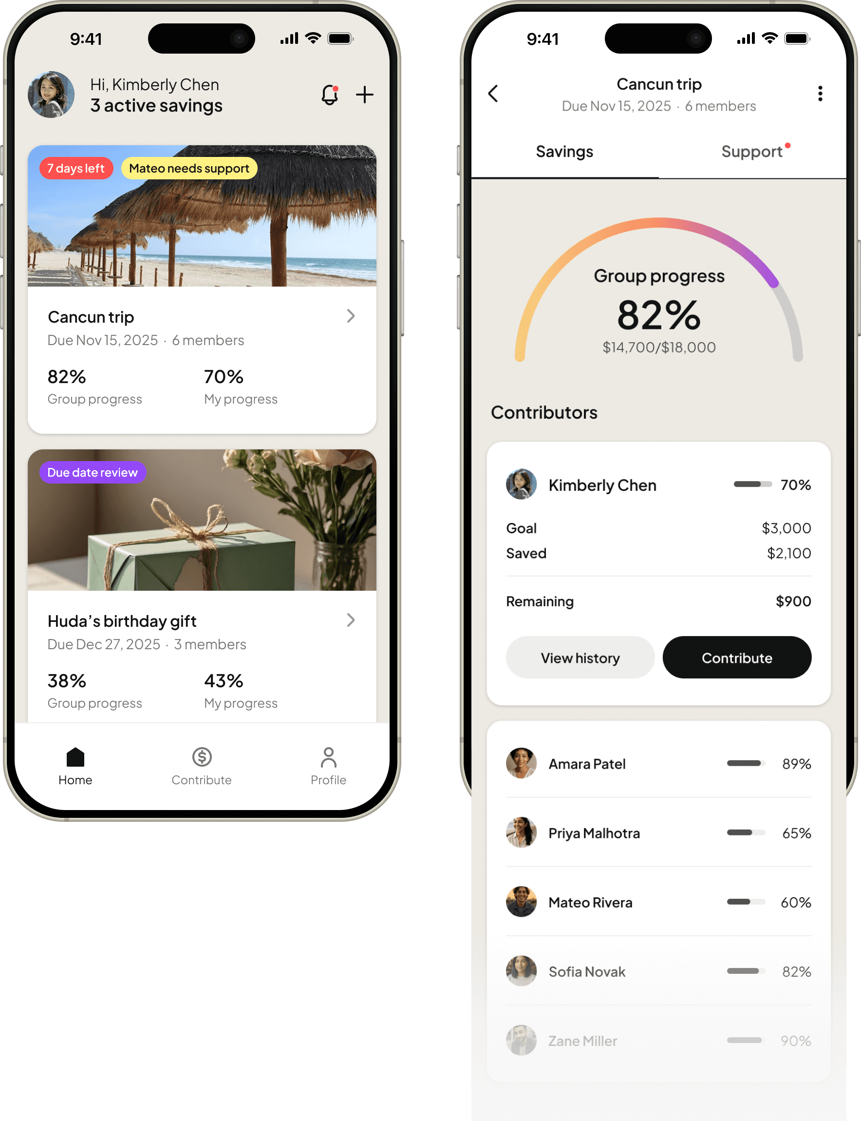 It celebrates group savings at set milestones and encourages members to stay motivated to keep saving together.