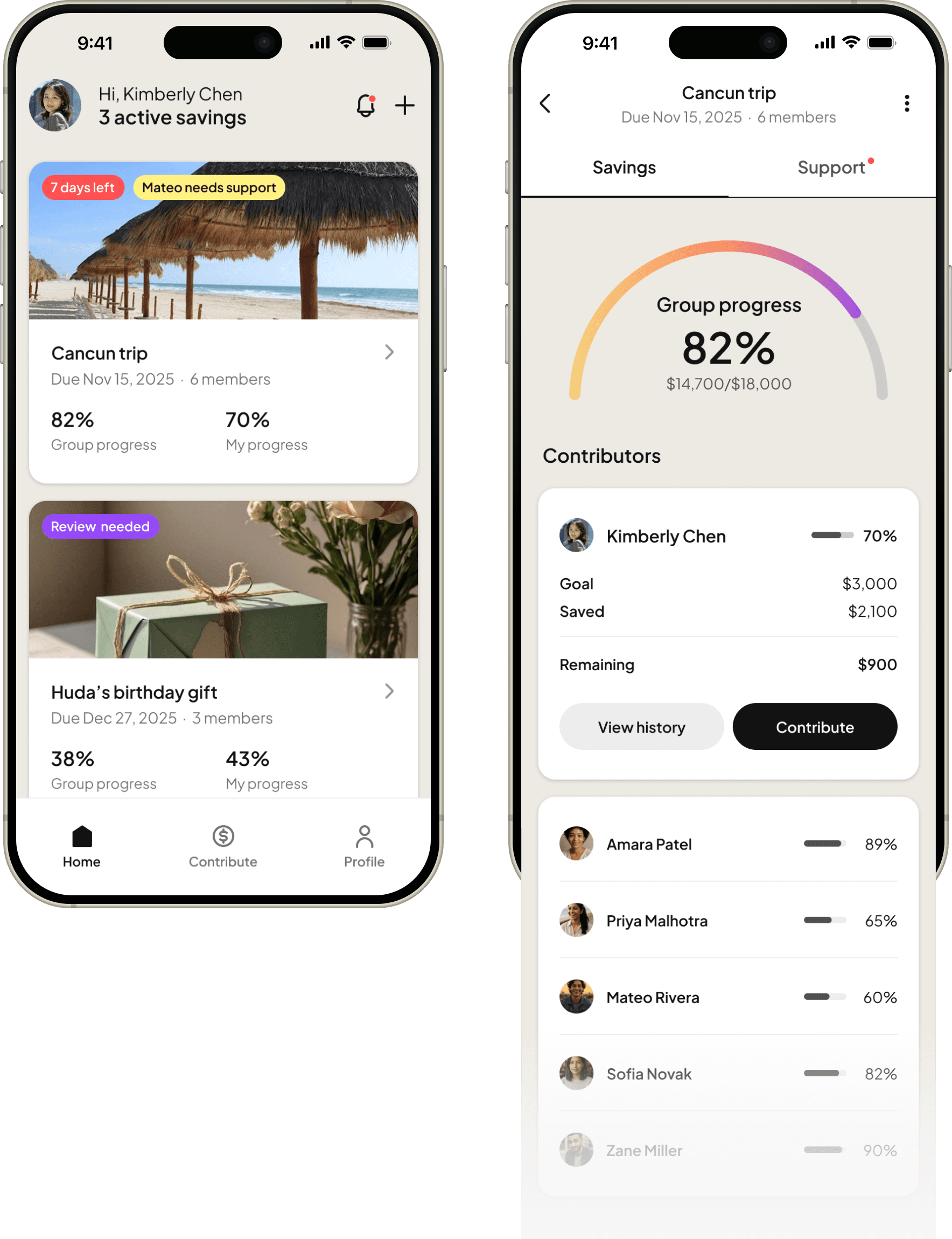 This motivated me to explore how group saving could be improved. I found two key patterns in how people save for a shared goal.
